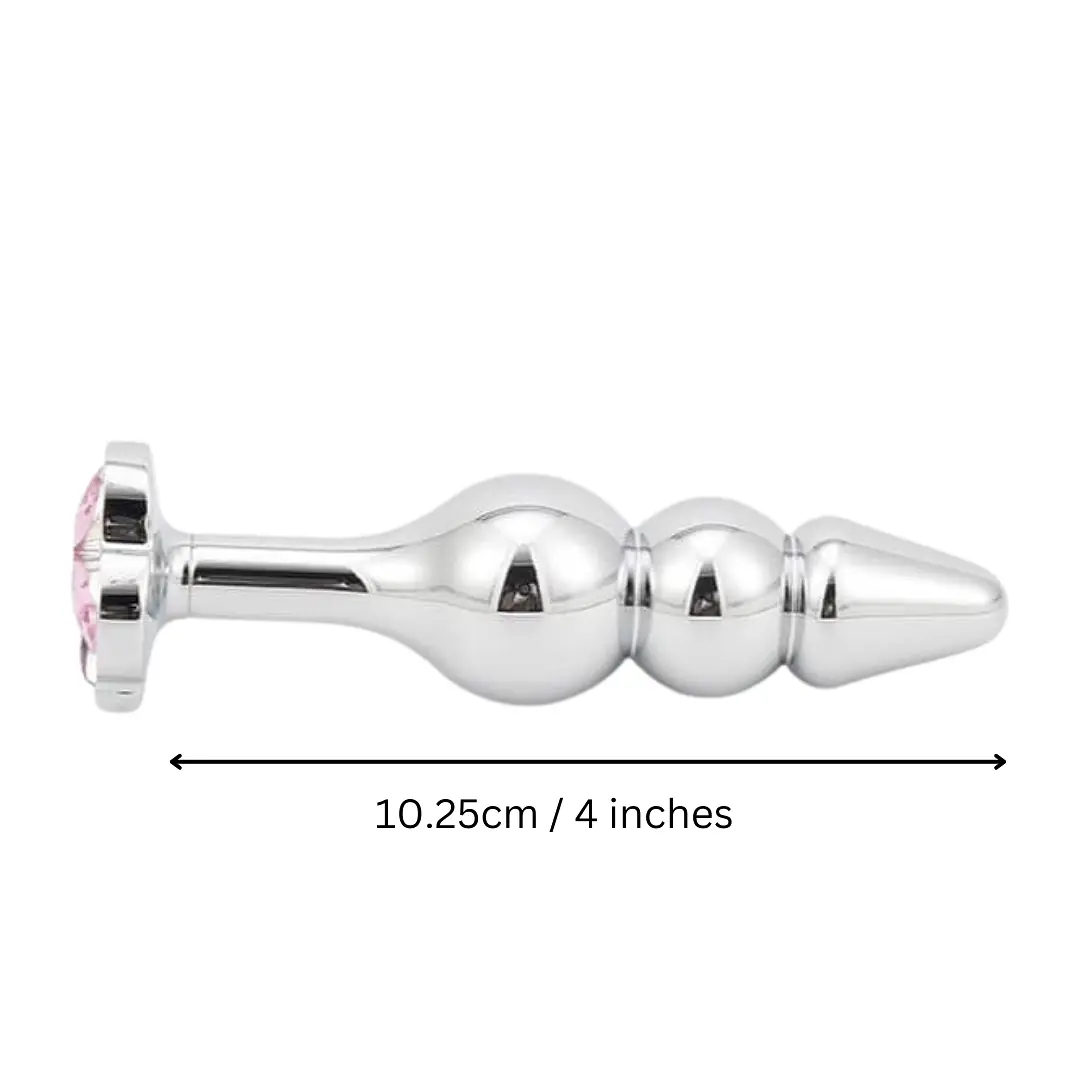 Add a touch of sophistication to your collection with the Club Gem Three-Bead Metal Plug. Designed for ultimate pleasure, this plug features three smooth metal beads, each offering a gradual increase in size for a satisfying and stimulating experience. The 4-inch insertable length is ideal for users who want to explore deeper sensations.