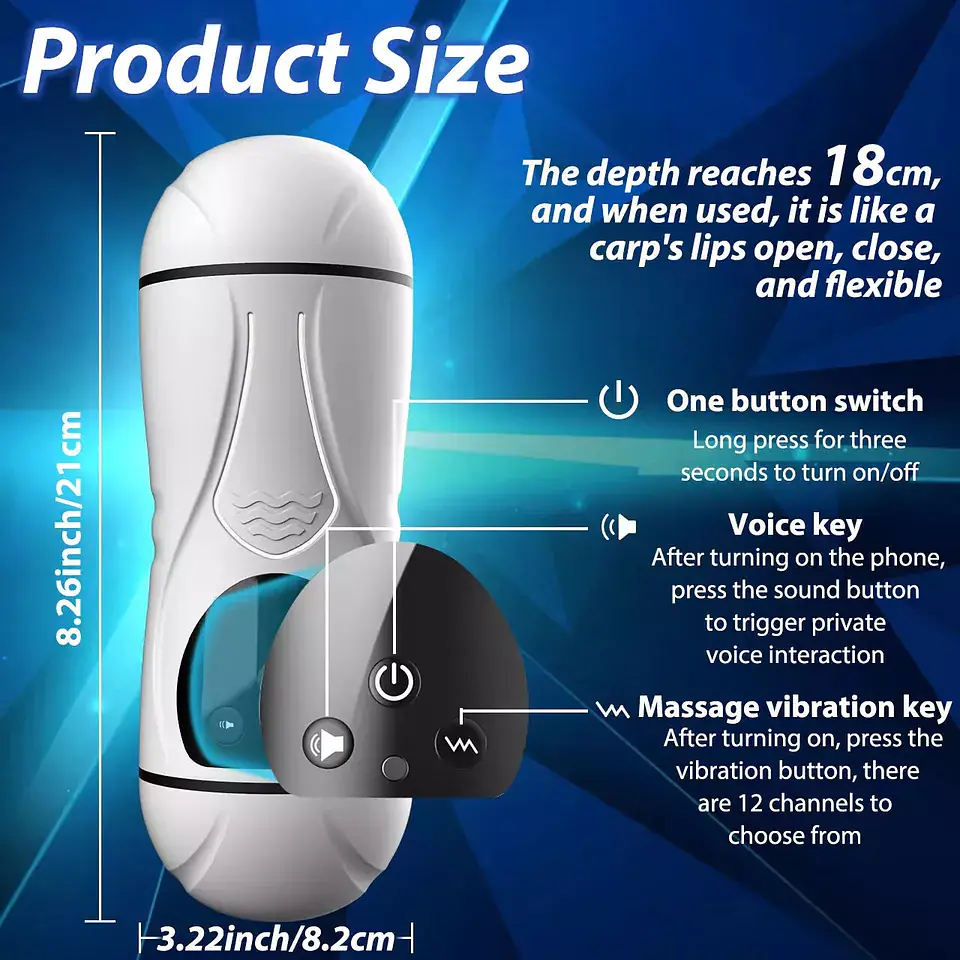 Experience ultimate pleasure with the PleasureSync Dual Sensation Hands-Free Vibrating Mouth & Vagina Masturbator with Girl Voice. Designed to deliver a lifelike experience, this innovative masturbator features dual entries—a realistic mouth on one side and a lifelike vagina on the other, providing diverse sensations tailored to your desires. The hands-free design allows for effortless enjoyment, while the 7 powerful vibration modes cater to all your pleasure needs. Enhance your experience with immersive girl voice sounds, bringing your fantasies to life. Made with body-safe materials, the PleasureSync Dual Sensation is easy to clean, discreet, and perfect for solo or partnered play.